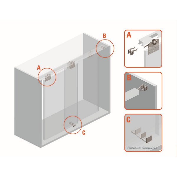 - Los carros permiten ser usados directamente con puertas de madera o marcos de aluminio.