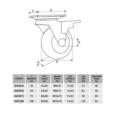 | Tamaño Rueda | 100mm, 35mm, 50mm, 75mm |
