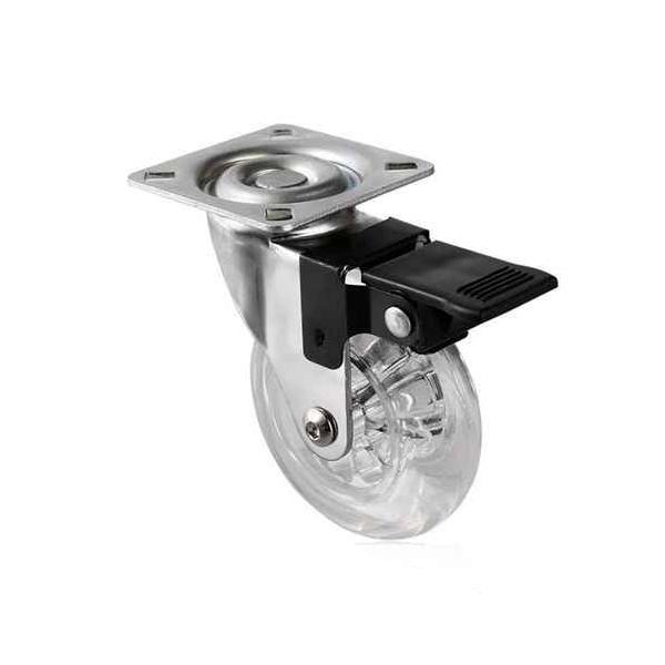 Rueda Poliuretano Transparente Base Giratoria Con Freno MEATON