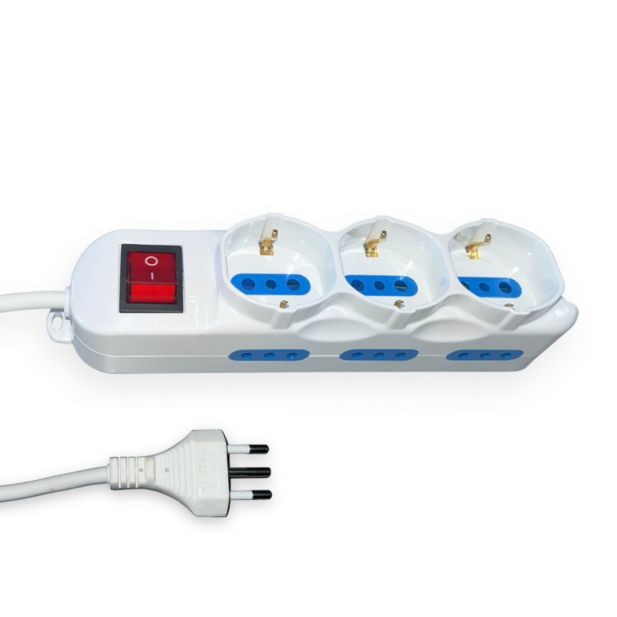 - Compuesto por 6 tomas modular 3 en línea y 3 schuko.